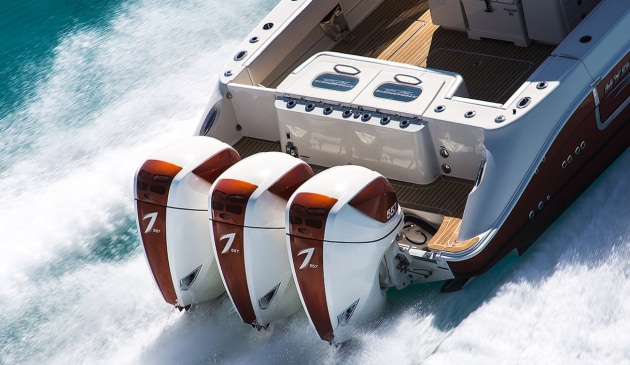 “Never before has an outboard owner been able to customise their outboard as you can with a Seven,” said James Jackman, Luxury Marine Performance. “Owners have the ability to customise the outboard’s cowling colour and graphics configuration, add LED lighting into the cowling in the 577hp and 627hp models, as well as configure the outboards with contra-rotating props, joystick and dual station controls.”